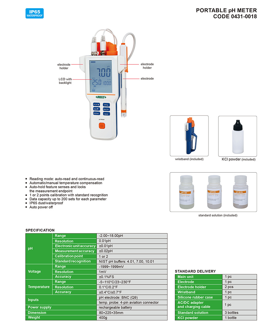 | 0431-0018 | pH/mV | off-line | -2.00~18.00pH, -1999~1999mV, -5~110°C/23~230°F | no |