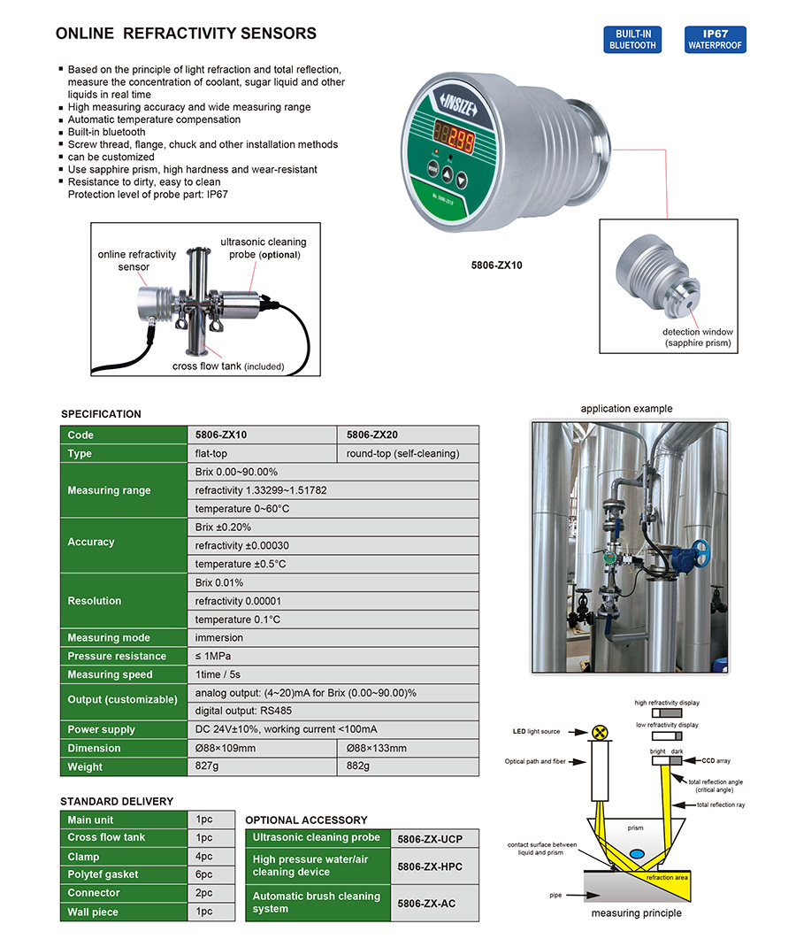 | 5806-ZX20 | refractometer | on-line | water based coolant, sugar, juice | scale |