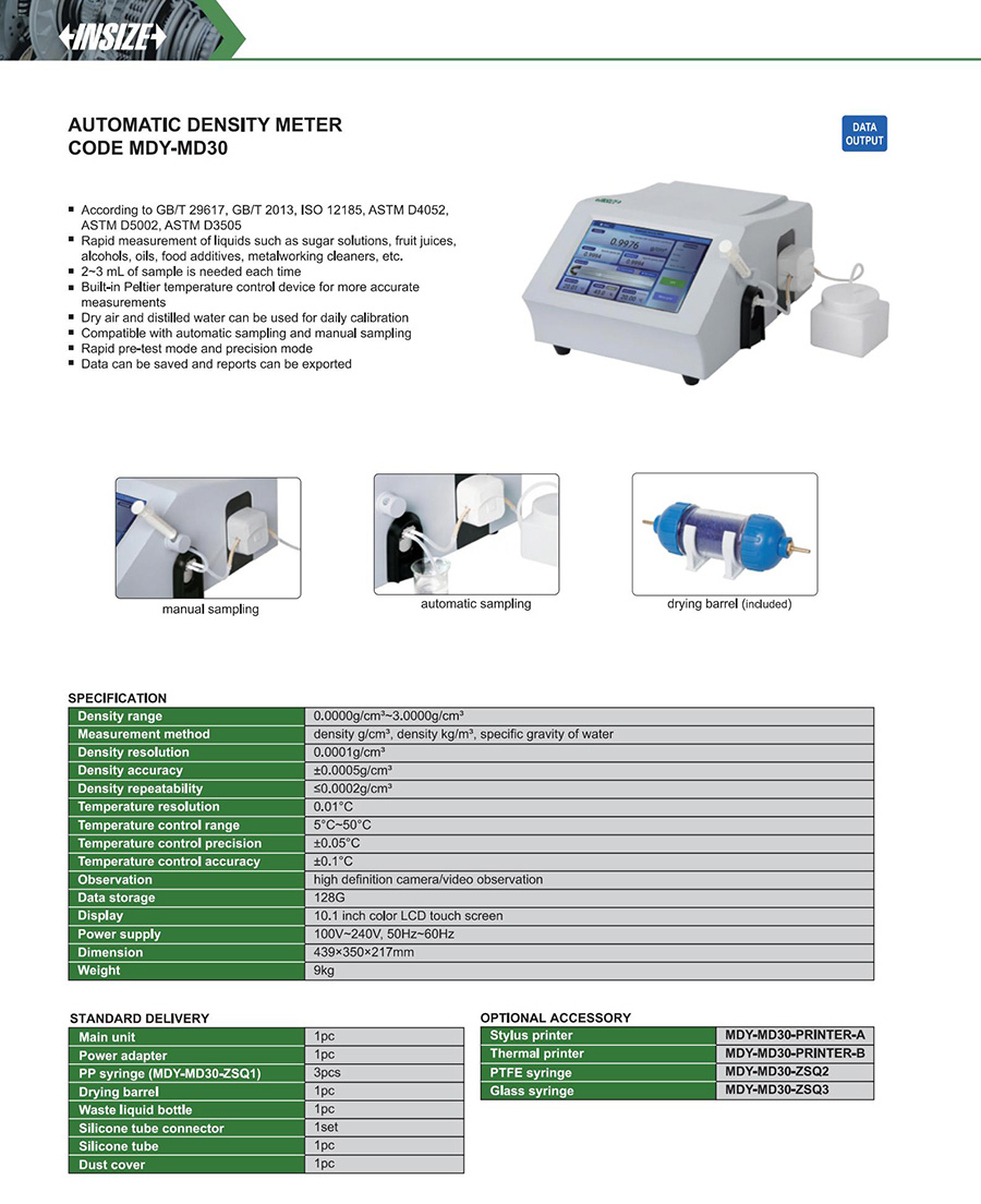 | MDY-MD30 | density | benchtop | 0.0000g/cm³~3.0000g/cm³, 5°C~50°C | yes |