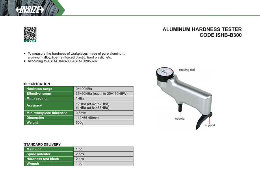 To measure the hardness of workpieces made of pure aluminum, aluminum alloy, fiber reinforced plastic, hard plastic, etc.