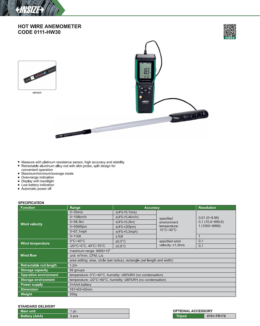 0111-HW30 -20°C~0°C, 40°C~70°C ±0.8°C 0.1 Wind temperature