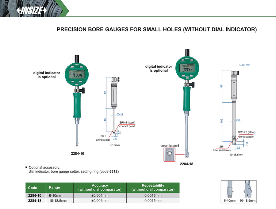 | 2284-10 | 6-10mm | ±0.004mm | 0.0015mm |