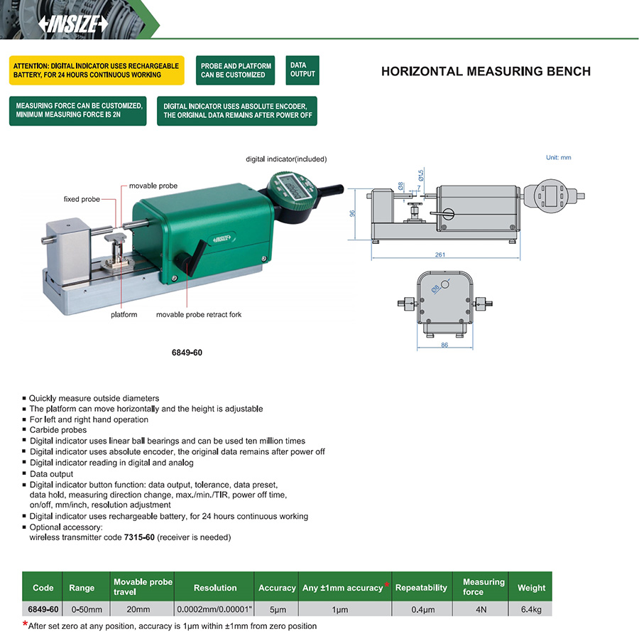 | 6849-60 | 5μm | 0.0002mm/0.00001" | 0.4μm | 0-50mm |