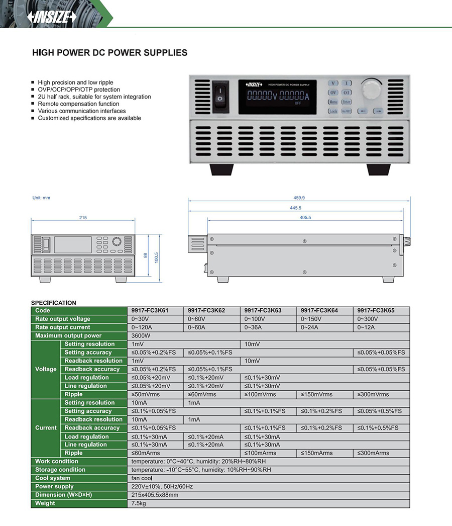 | 9917-FC3K65 | 0~300V | 0~12A | 3600W |