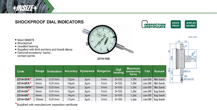 | 2314-10A | 10mm | 17µm | 0.01mm |