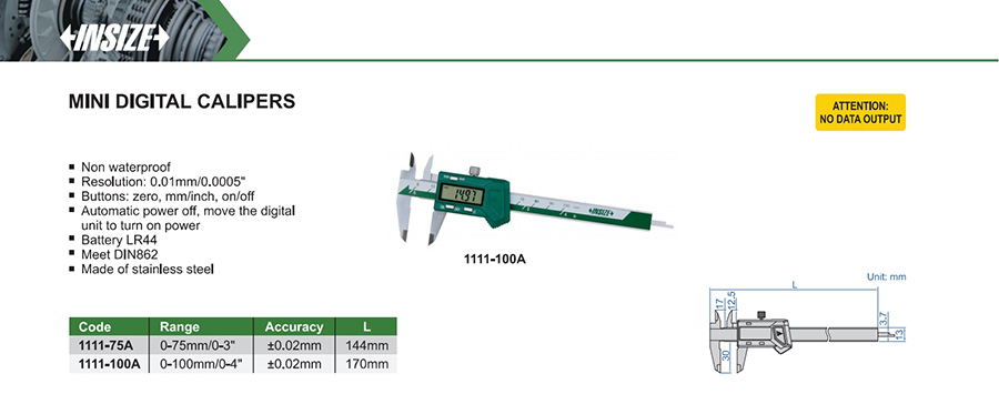 1111-100A 0-100mm/0-4" ±0.02mm 0.01mm/0.0005" without data interface