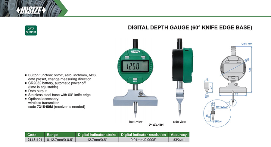 2143-101 0-12.7mm/0-0.5" ±20µm 0.01mm/0.0005" with data interface