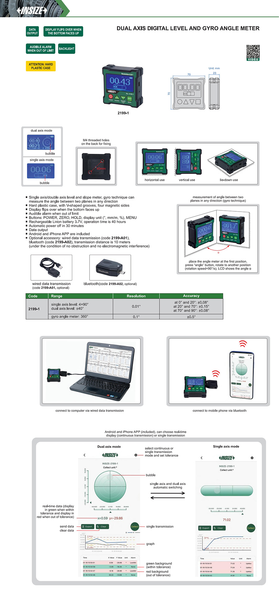 | 2199-1 | gyro angle meter: 360° | ±0.5° | 0.1° | no |