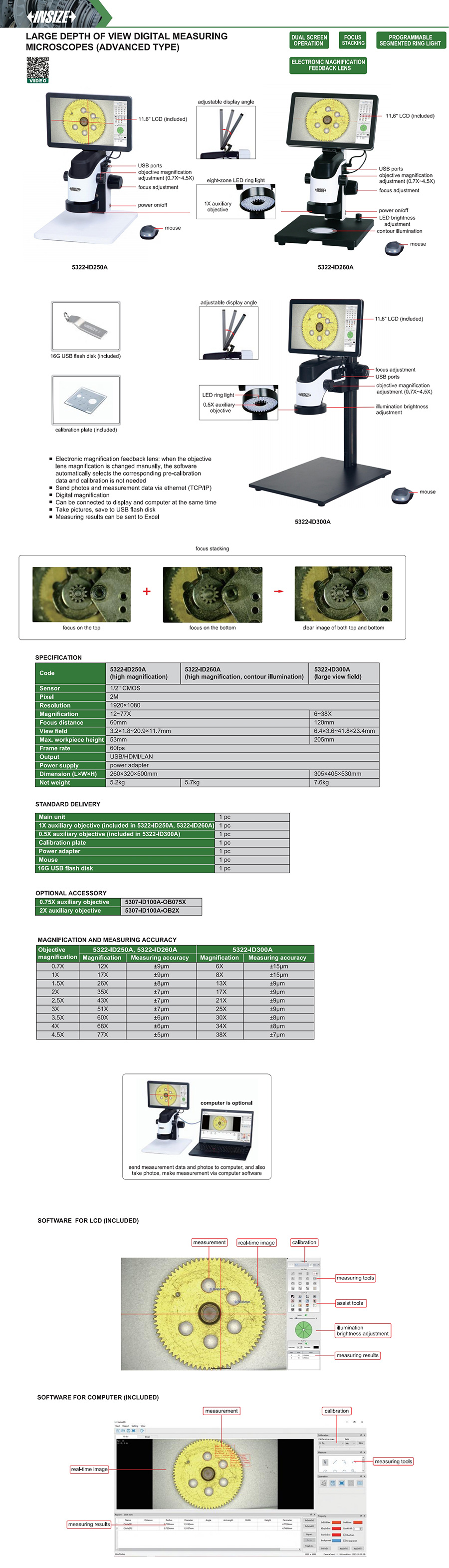 | 5322-ID260A | digital measuring microscopes | 12~77X | 3.2×1.8~20.9×11.7mm | 2M |