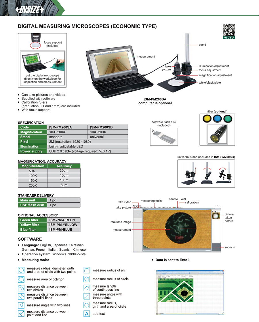 | ISM-PM200SA | portable digital microscopes | 10X~200X | 2M |