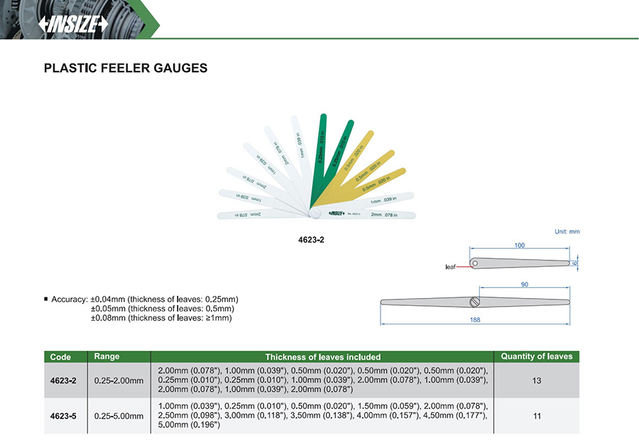 4623-2 0.25-2.00mm ±0.04mm-±0.08mm