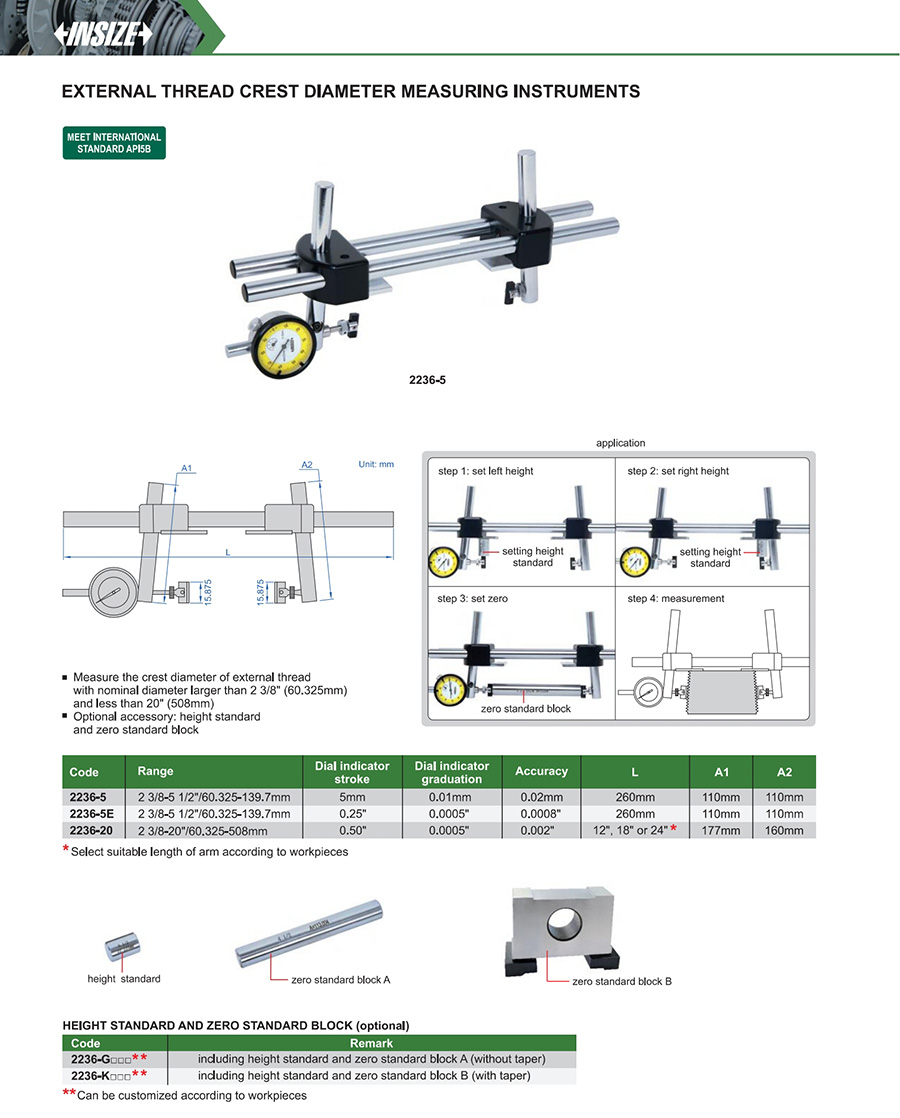 2236-5 2 3/8-5 1/2"/60.325-139.7mm 0.02mm 0.01mm crest diameter