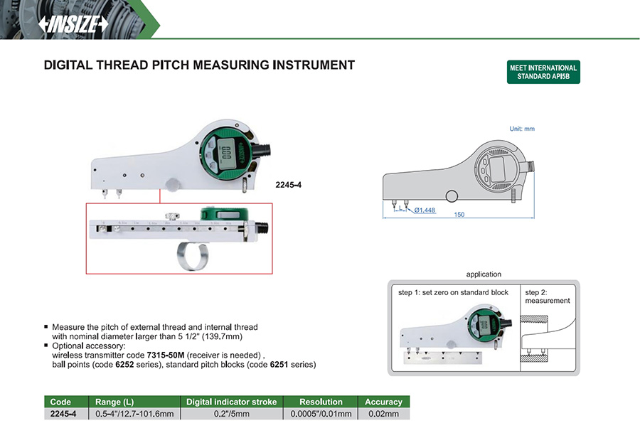 2245-4 0.5-4"/12.7-101.6mm 0.02mm 0.0005"/0.01mm lead