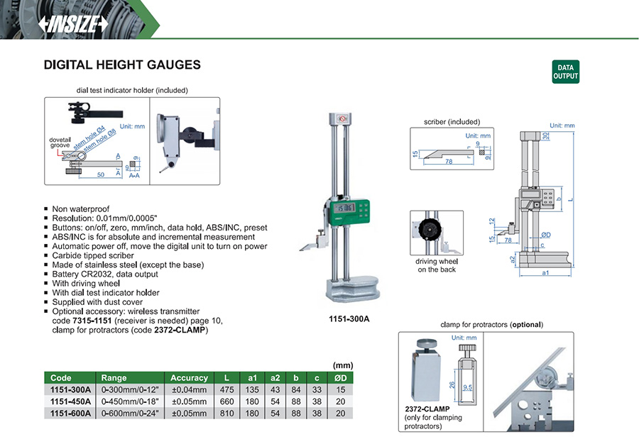 1151-300A 0-300mm/0-12" ±0.04mm 0.01mm/0.0005"