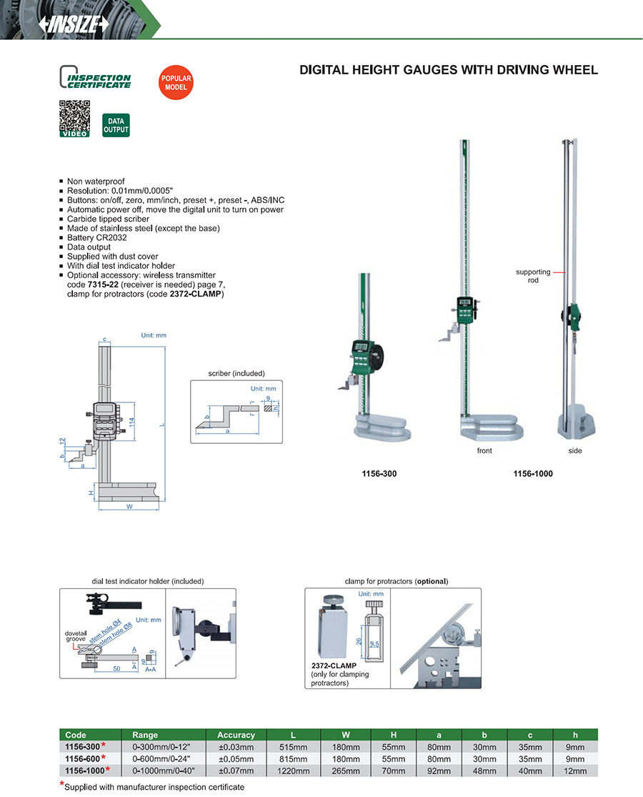 1156-300 0-300mm/0-12" ±0.03mm 0.01mm/0.0005"