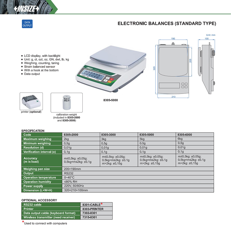 Code Resolution Maximum weighing Dimension of pan Internal calibration