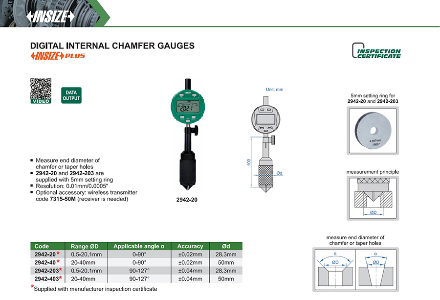 Home / Dimensional Metrology / Measuring Tools / Bore Diameter And Circumference Measuring Tools / Internal Chamfer Gauges
