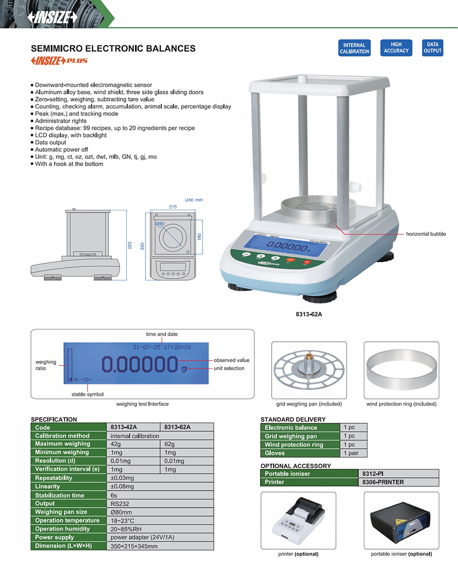 | 8313-62A | 0.00001g | 62g | Ø80mm | yes |