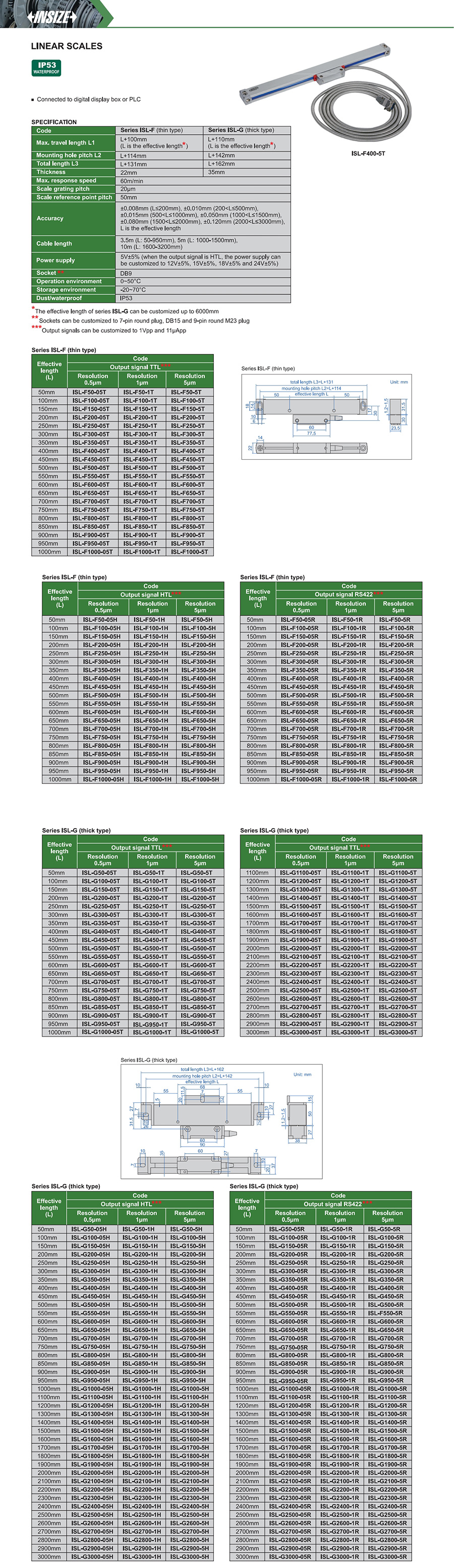 Series ISL-G (thick type) optical grating 0.5µm/1µm/5µm TTL/HTL/RS422