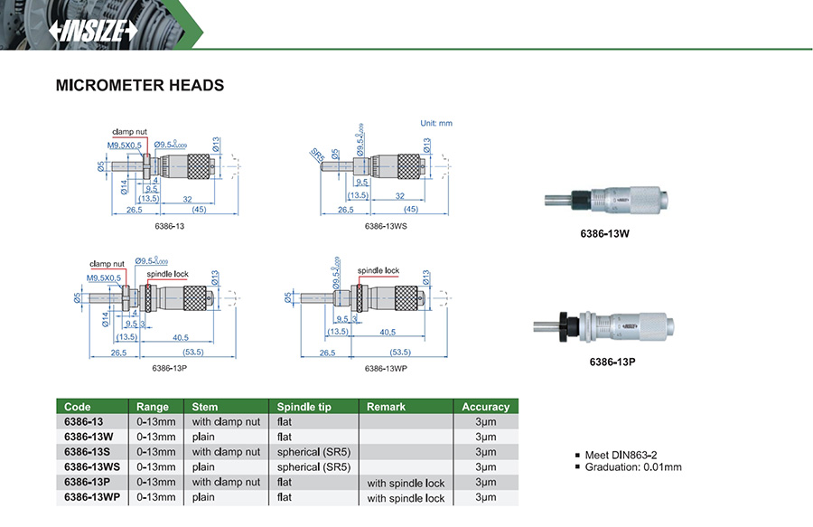 6386-13WS 0-13mm 3μm 0.01mm plain spherical (SR5) -