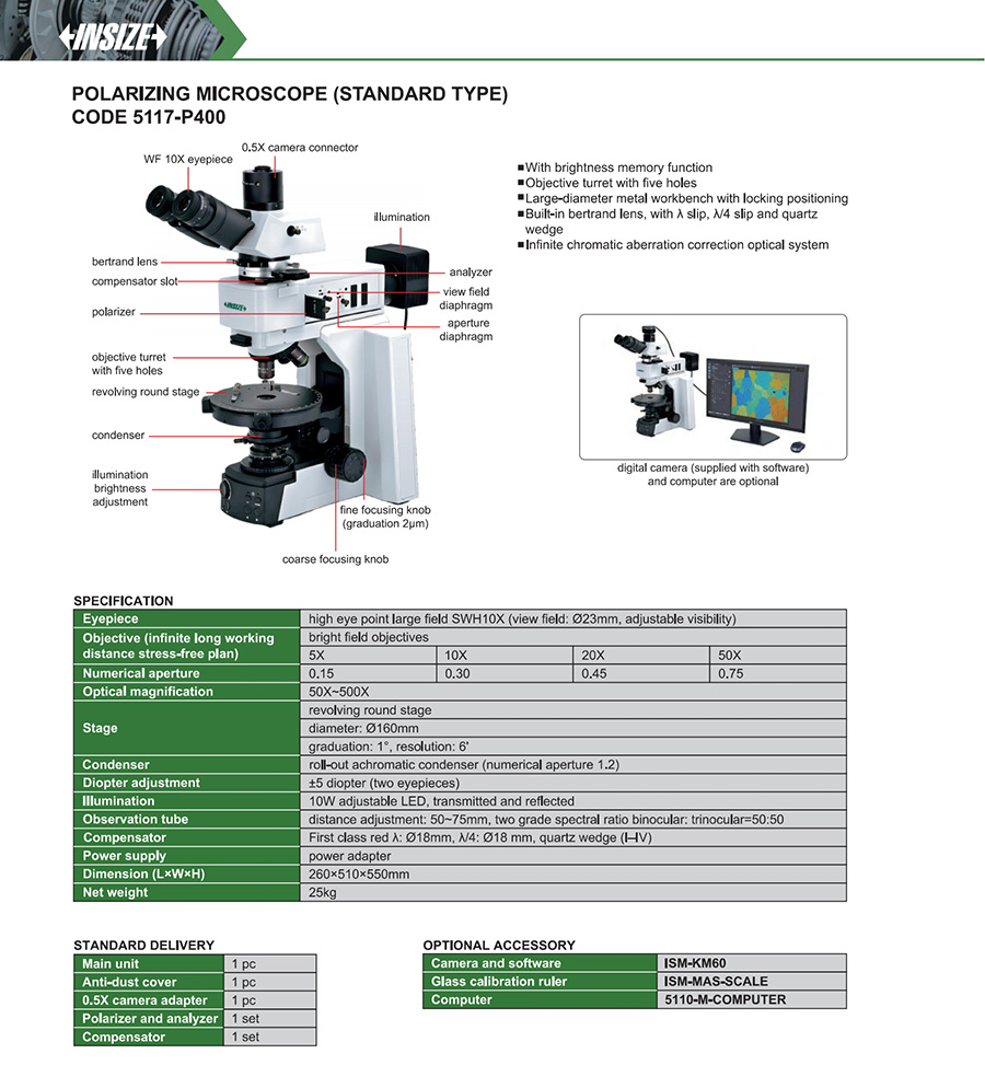 5117-P400 diameter: Ø160mm, graduation: 1°, resolution: 6' 50X~500X high eye point large field SWH10X bright field