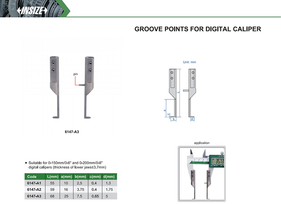 6147-A3 suitable for 0-150mm/0-6" and 0-200mm/0-8" digital calipers (thickness of lower jaws≤3.7mm)