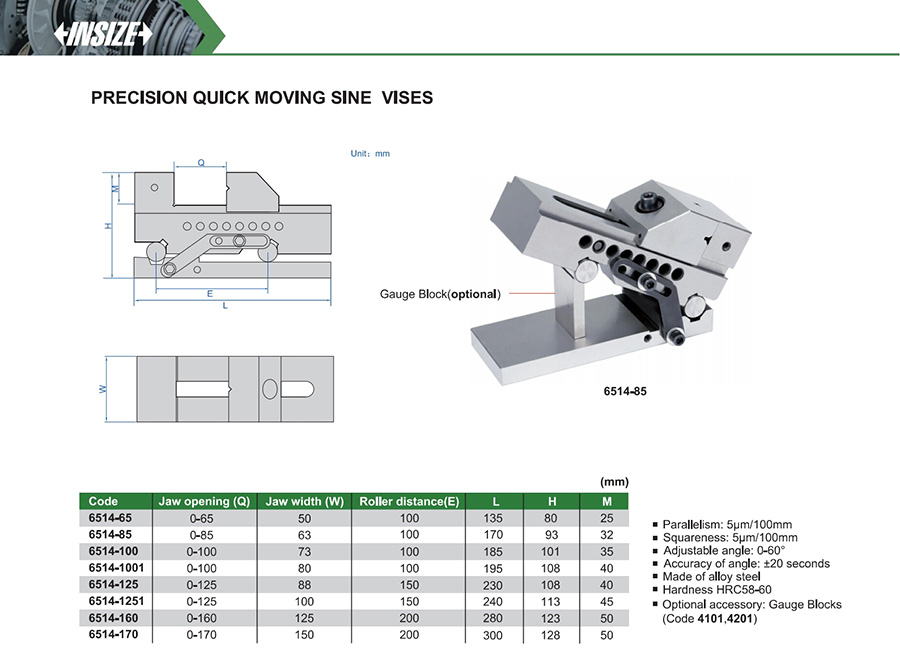 Code Jaw opening (Q) Jaw width (W) Parallelism Roller distance (E)