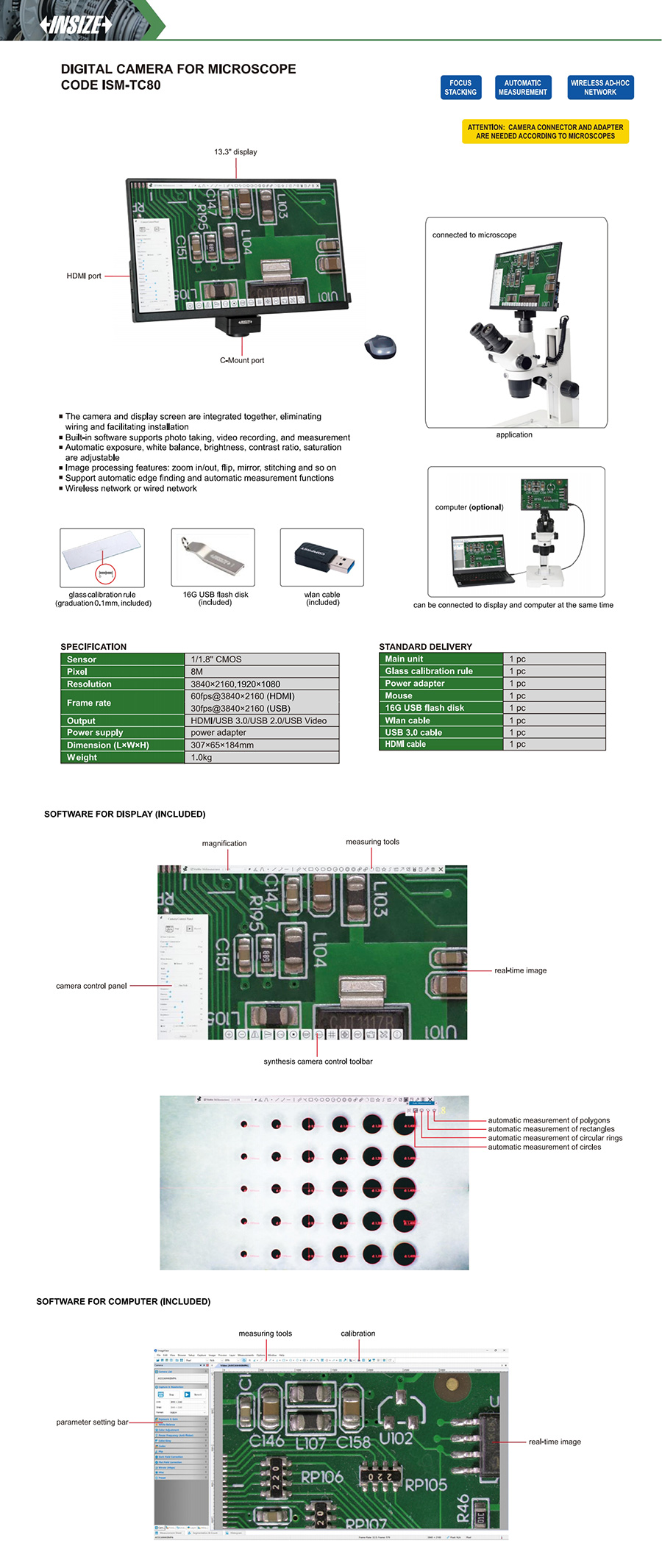 ISM-TC80 1/1.8'' cmos 3840×2160,1920×1080 8M 60fps@3840×2160 (HDMI), 30fps@3840×2160 (USB)