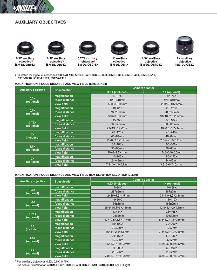 Suitable for digital microscopes 5303-AF103, 5310-DL401, ISM-DL300, ISM-DL301, ISM-DL400, ISM-DL510, 5315-S710, 5317-AF109, 5317-AF110