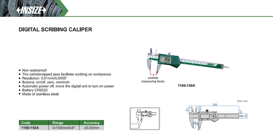 1166-150A 0-150mm/0-6" ±0.03mm 0.01mm/0.0005" with data interface