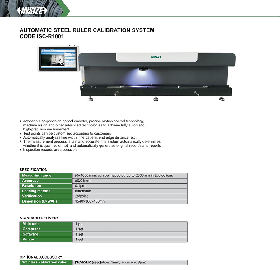 ISC-R1001 (0~1000)mm ±0.01mm 0.1μm 1540×360×430mm automatic 2s/point