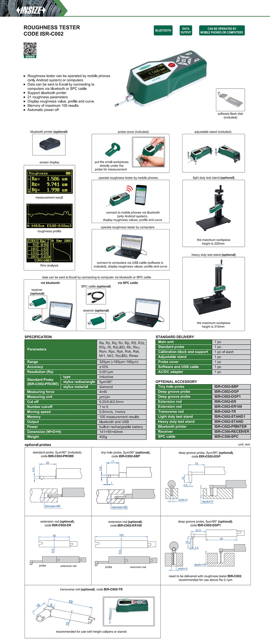 ISR-C002 320μm (-160μm~160μm) 4mN 5µm/90° USB and bluetooth