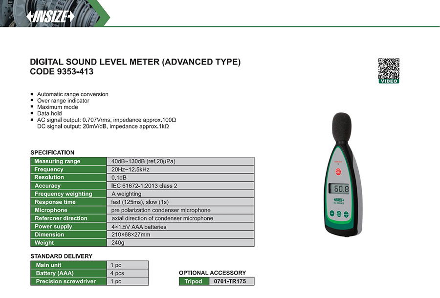 9353-413 IEC 61672-1:2013 class 2 20Hz~12.5kHz A weighting no