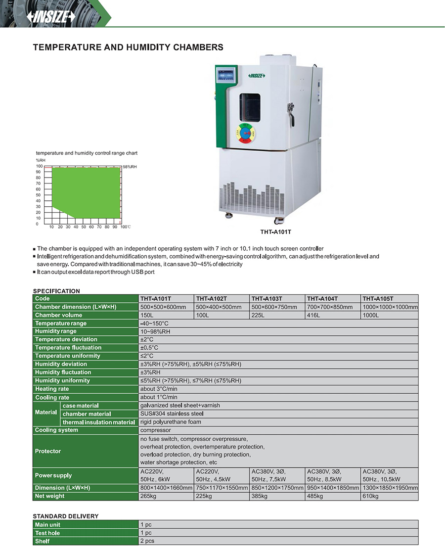 | THT-A105T | 1000×1000×1000mm | 10~98%RH | ≥1℃/min |