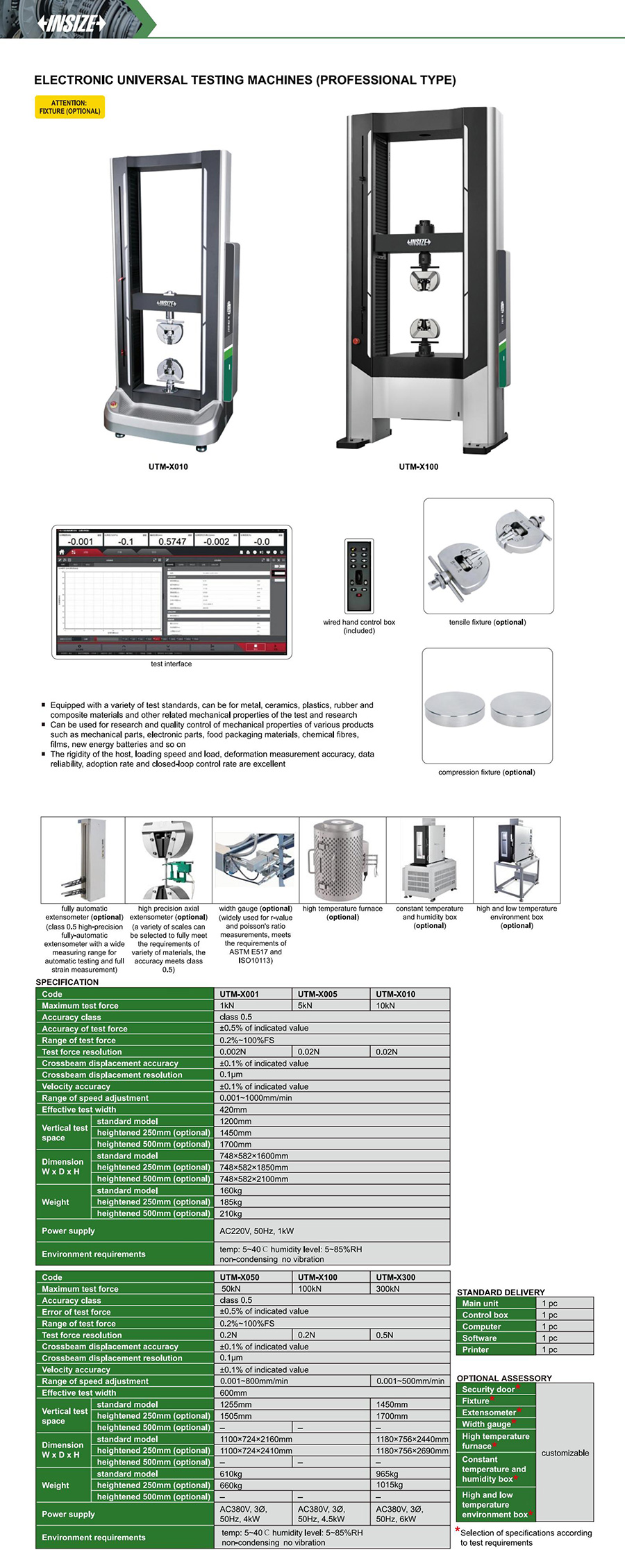 Equipped with a variety of test standards, can be for metal, ceramics, plastics, rubber and composite materials and other related mechanical properties of the test and research