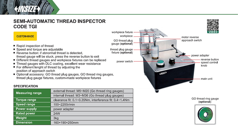 TGI-T1D4 external thread: M5~M20 (Go thread ring gauges), internal thread: M3~M36 (Go thread plug gauges) clearance fit: 0.1~0.35Nm, interference fit: 0.4~1.4Nm