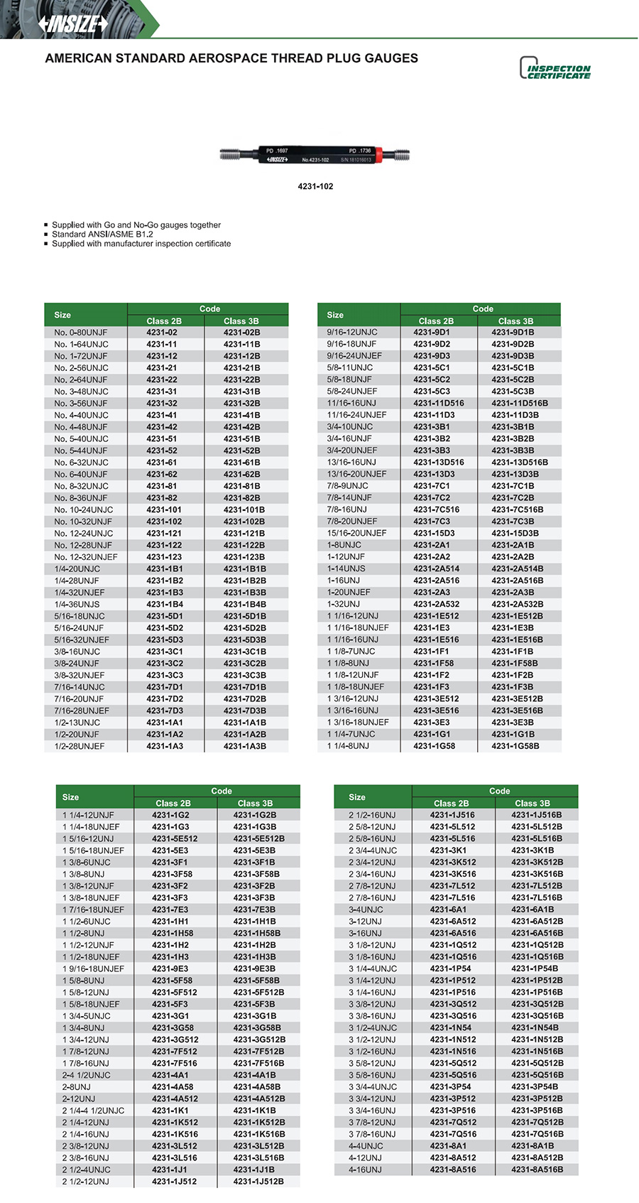 Supplied with Go and No-Go gauges together