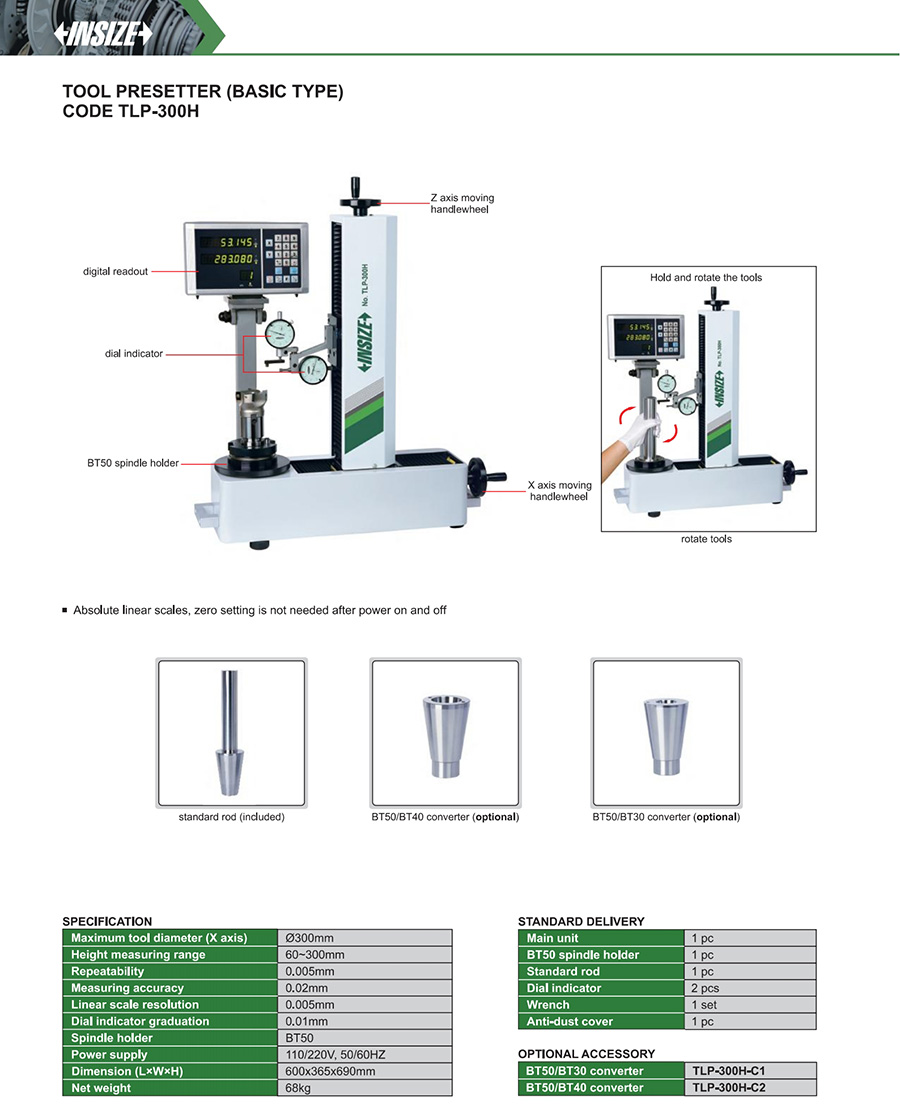 | TLP-300H | 0.02mm | 0.005mm | Ø300mm | 60~300mm | 0.005mm |