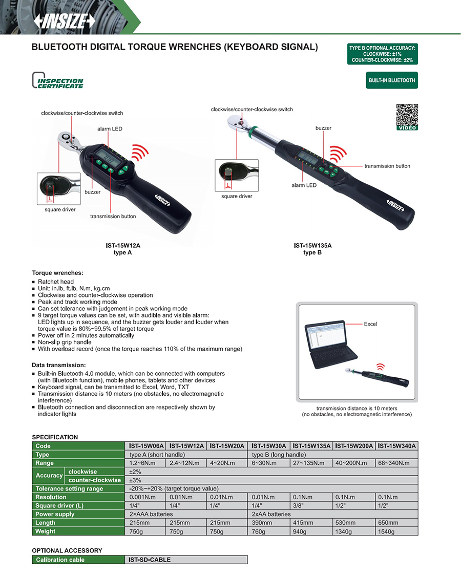 | IST-15W340A | digital | 68~340N.m | wireless transmission (keyboard signal) | digital display | fixed ratchet head |