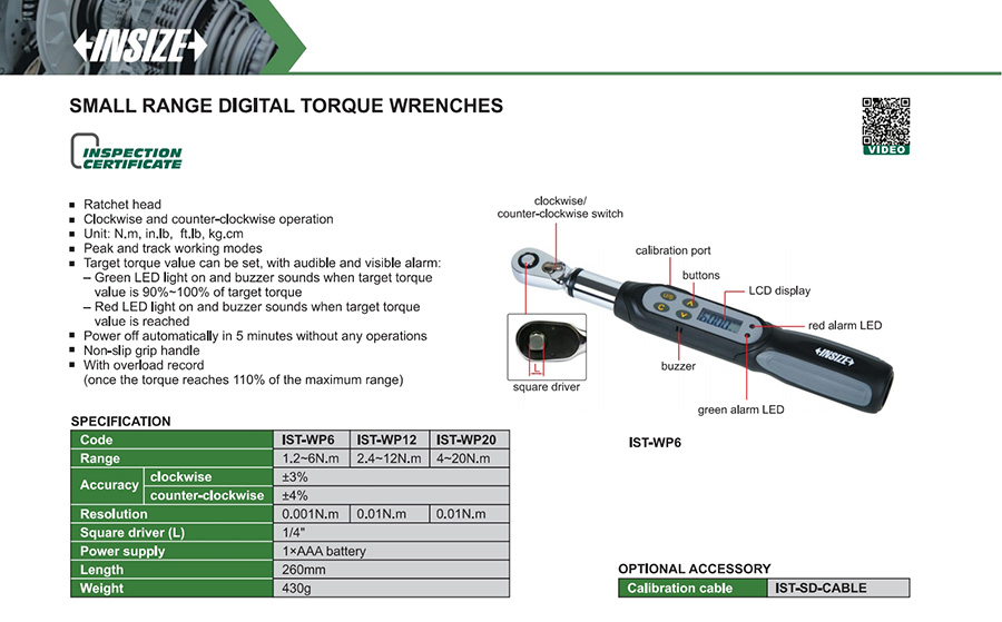 | IST-WP20 | digital | 4~20N.m | no transmission | digital display | fixed ratchet head |