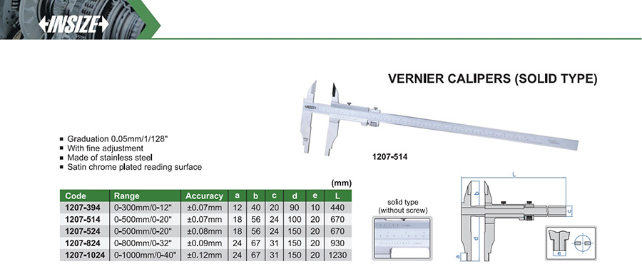 | 1207-514 | 0-500mm/0-20" | ±0.07mm | 0.05mm/1/128" |