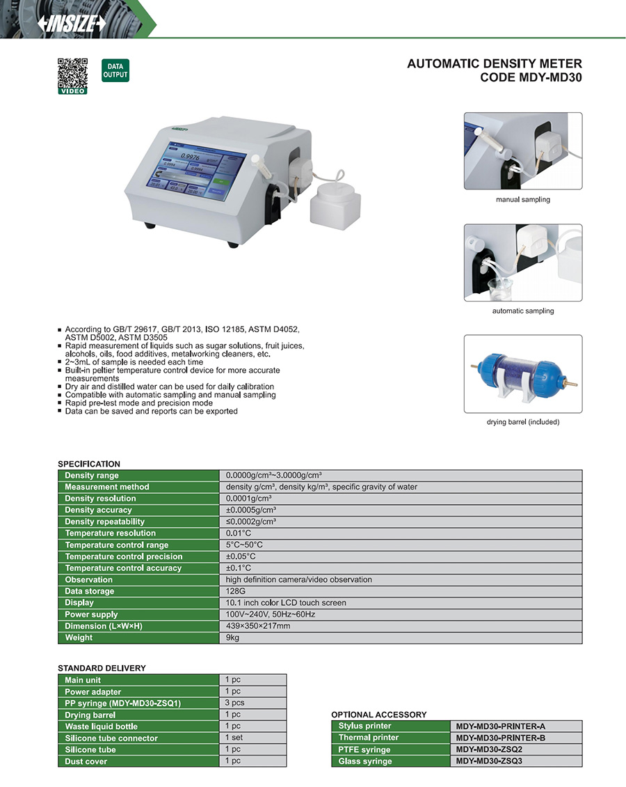 | MDY-MD30 | density | benchtop | 0.0000g/cm³~3.0000g/cm³, 5°C~50°C | yes |