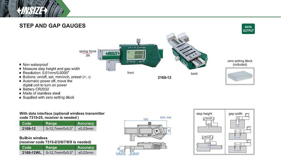2168-12WL 0-12.7mm/0-0.5" ±0.03mm 0.01mm/0.0005"