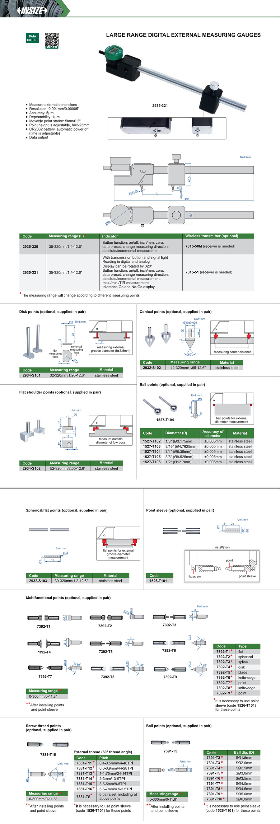 | 2935-320 | 5µm | 0.001mm/0.00005" | 1µm | 35-320mm/1.4-12.6" |