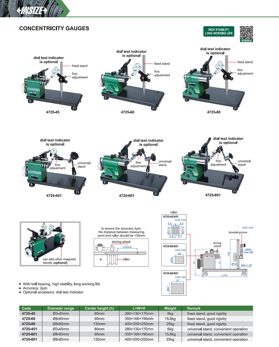 | 4725-601 | Ø8-60mm | 2µm | universal stand, convenient operation |