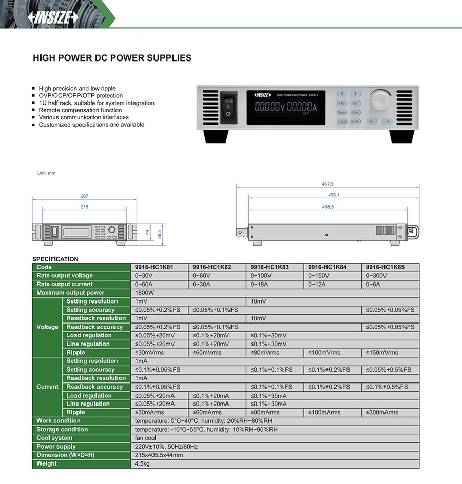| 9916-HC1K81 | 0~30V | 0~60A | 1800W |