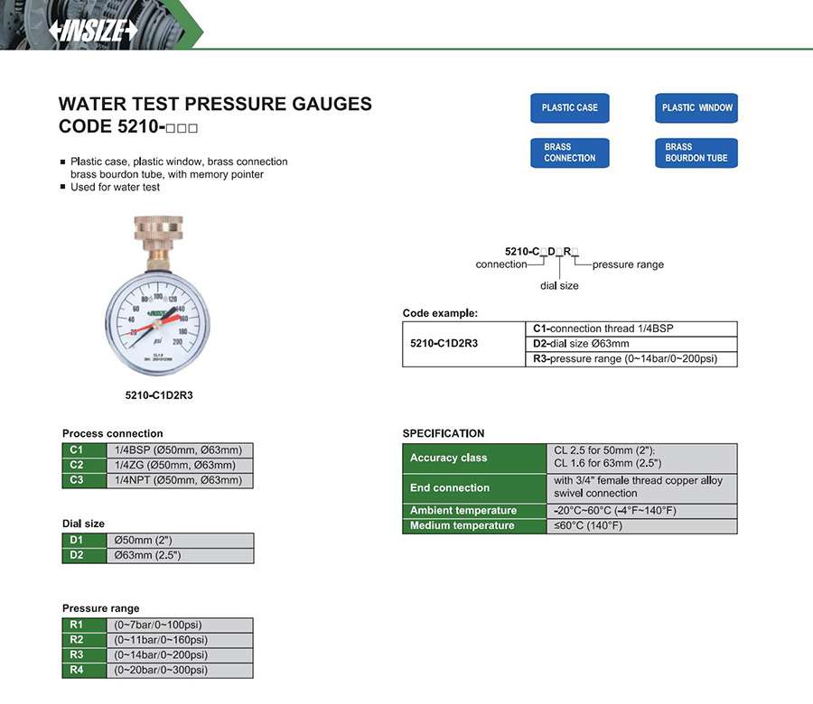 | 5210 | 1/4BSP, 1/4ZG, 1/4NPT | Ø50mm, Ø63mm | bottom | plastic |