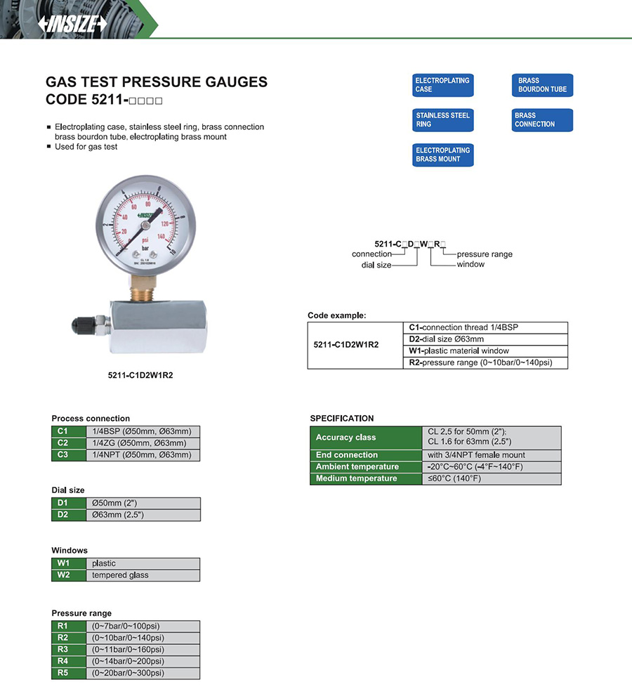 | 5211 | 1/4BSP, 1/4ZG, 1/4NPT | Ø50mm, Ø63mm | bottom | plastic, tempered glass |