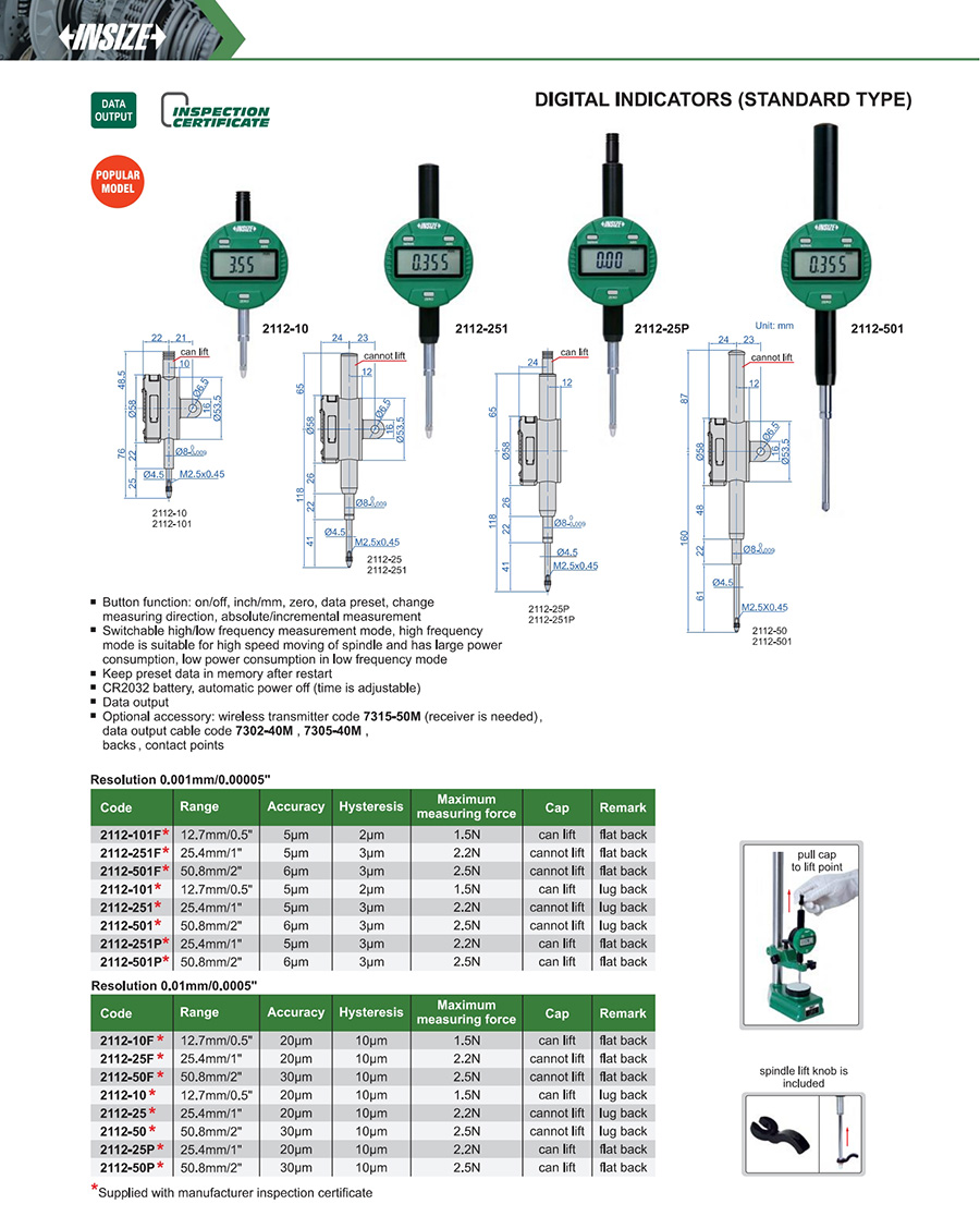 2112-101F 12.7mm/0.5" 5µm 0.001mm/0.00005"