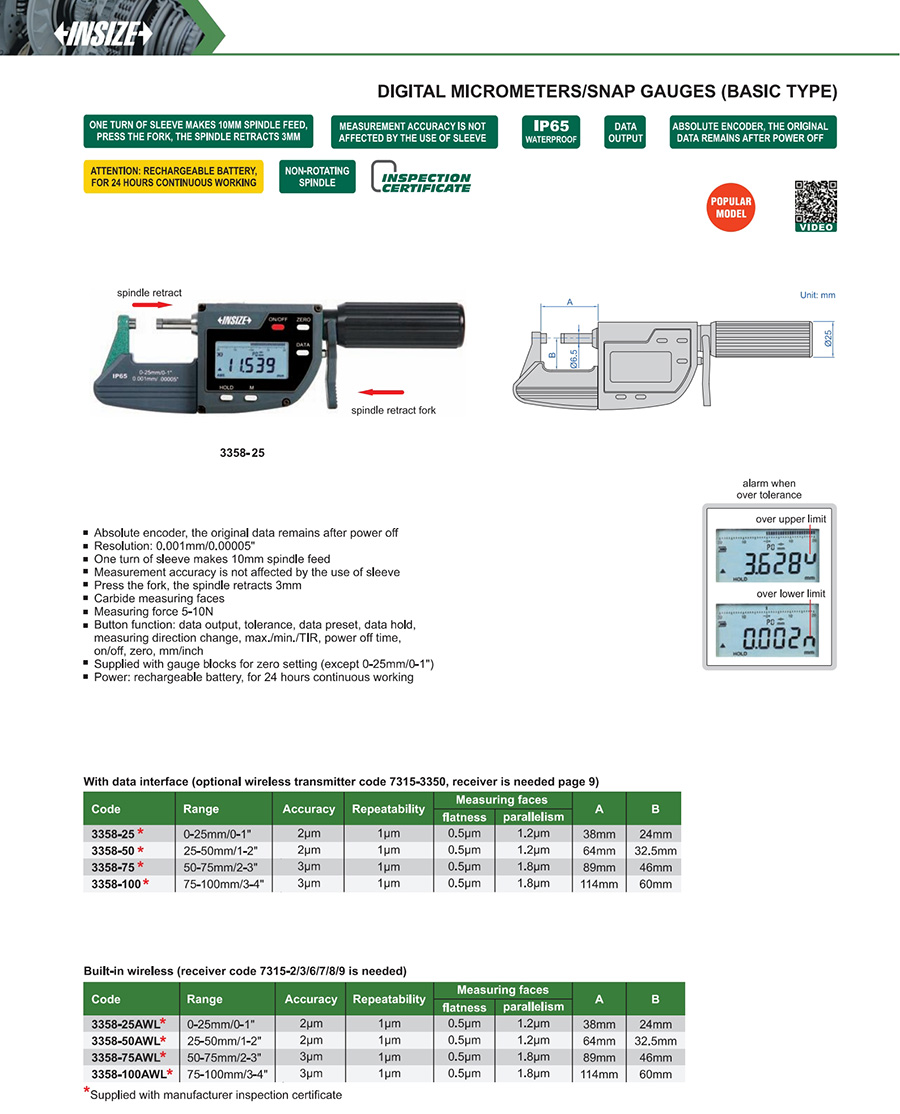 3358-25 0-25mm/0-1" 2μm 0.001mm/0.00005" with data interface
